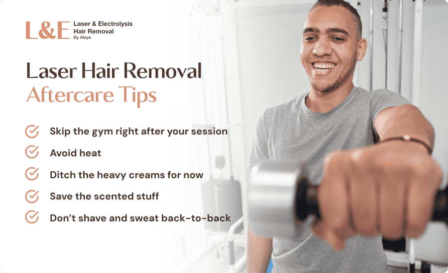 If you’ve exercised after laser hair removal, these simple steps will help soothe your skin and protect your results.