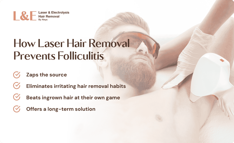 - By disabling the hair follicle, laser hair removal for folliculitis helps prevent both folliculitis and ingrown hairs from forming
