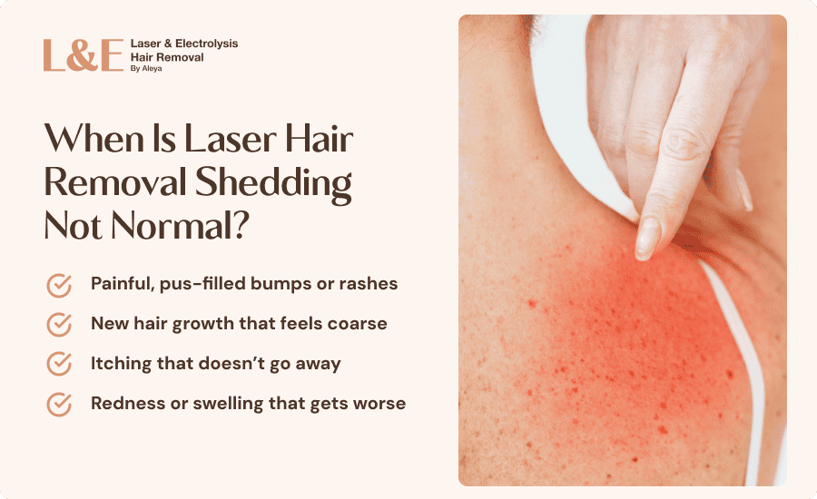 While light shedding is totally normal after laser hair removal, there are a few red flags to keep an eye on.