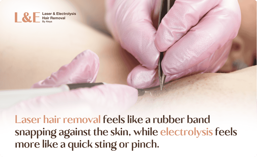 Electrolysis often feels like a quick sting, pinch, or flash of heat.