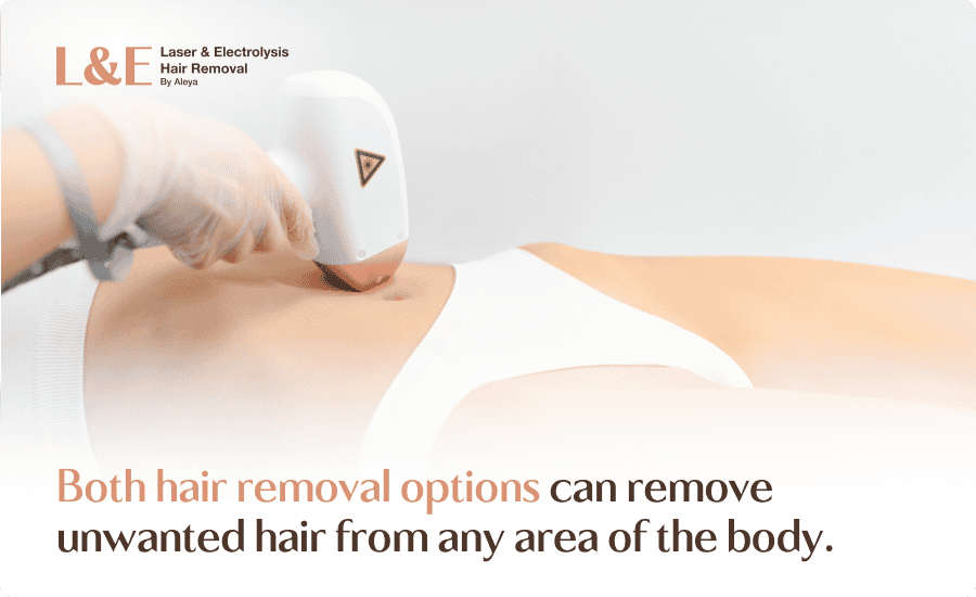 - You’re treating larger areas like your legs, arms, back, or chest. Laser covers more surface area quickly, making it ideal for full-body treatments.